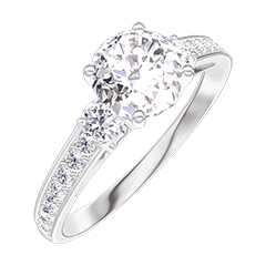 Inel Aur alb 18 carate - Diamant rotund 0.7 carate - Pietre laterale Diamant - Încrustare Diamant