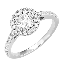 Inel Aur alb 9 carate - Diamant rotund 0.5 carate - Halo Diamant - Încrustare Diamant