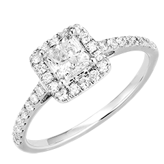 Inel Aur alb 9 carate - Diamant Princess 0.5 carate - Halo Diamant - Încrustare Diamant