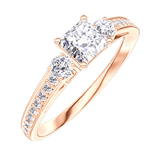 Inel Aur roz 9 carate - Diamante de laborator Princess 0.3 carate - Pietre laterale Diamante de laborator - Încrustare Diamante de laborator
