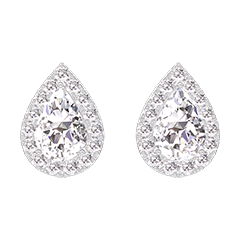 Cercei Aur alb 18 carate - Diamant Pară 0.3 carate (2 X) - Halo Diamant