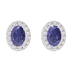 Cercei Aur alb 18 carate - Safir albastru Oval 0.3 carate (2 X) - Halo Diamant