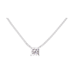 Colier Aur alb 18 carate - Diamant Princess 0.3 carate - Lanţ Veneţian