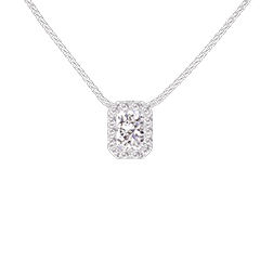 « L'ATELIER » NR. 201712Colier Aur alb 9 carate - Diamante de laborator Smarald 0.3 carate - Halo Diamante de laborator - Lanţ Veneţian