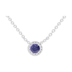 Colier Aur alb 18 carate - Safir albastru rotund 0.3 carate - Halo Diamant - Lanţ Zale