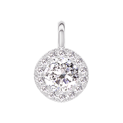 Pandantiv Aur alb 18 carate - Diamant rotund 0.3 carate - Halo Diamant - Fără lanţ