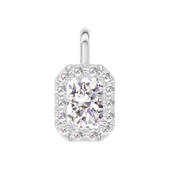 Pandantiv Aur alb 18 carate - Diamant Smarald 0.3 carate - Halo Diamant - Fără lanţ