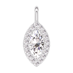 Pandantiv Aur alb 18 carate - Diamant Marquise 0.3 carate - Halo Diamant - Fără lanţ