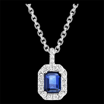 « L'ATELIER » NR. 206312Pandantiv Aur alb 9 carate - Safir albastru Smarald 0.3 carate - Halo Diamant - Încrustare Diamant - Lanţ Zale