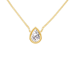 Colier Aur galben 9 carate - Diamante de laborator Pară 0.3 carate - Lanţ Veneţian