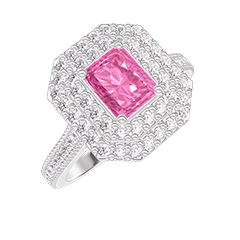 « L'ATELIER » NR. 416341Inel Aur alb 18 carate - Safir roz Smarald 0.5 carate - Halo Diamant - Încrustare Diamant