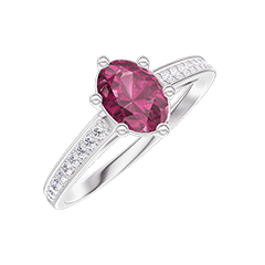 Inel Aur alb 18 carate - Rubin Oval 0.5 carate - Încrustare Diamant