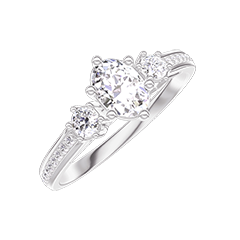 Inel Aur alb 18 carate - Diamant Oval 0.3 carate - Pietre laterale Diamant - Încrustare Diamant