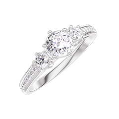 Inel Aur alb 9 carate - Diamant rotund 0.3 carate - Pietre laterale Diamant - Încrustare Diamant