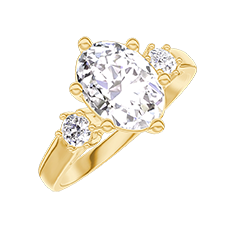 Inel Aur galben 18 carate - Diamante de laborator Oval 1 carate - Pietre laterale Diamante de laborator