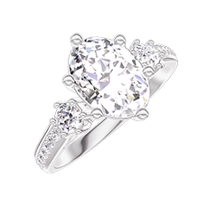 Inel Aur alb 9 carate - Diamante de laborator Oval 1 carate - Pietre laterale Diamante de laborator - Încrustare Diamante de laborator
