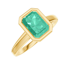 Descoperă acest inel solitar din aur galben 9 carate, împodobit cu un smarald dreptunghiular de 1 carat, calitate Very Good. Designul simplu evidențiază puritatea și intensitatea culorii pietrei.