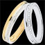 O bandă de aur galben se uneşte cu o bandă de aur alb lucrată efect diamant pentru eleganţă şi atemporalitate.