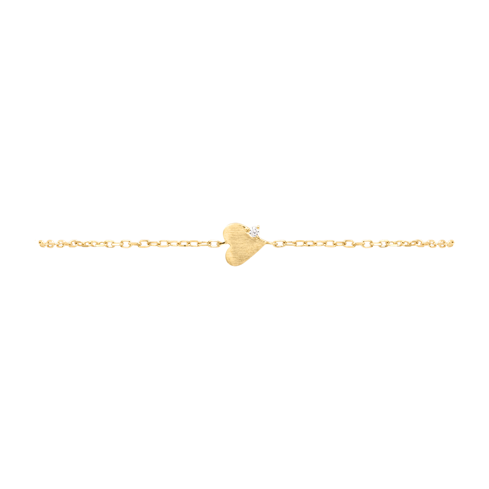 O inimă din aur mat, evidențiată de un diamant strălucitor pe un lanț fin și feminin.O bijuterie discretă și delicată, perfectă pentru a celebra dragostea zi de zi.