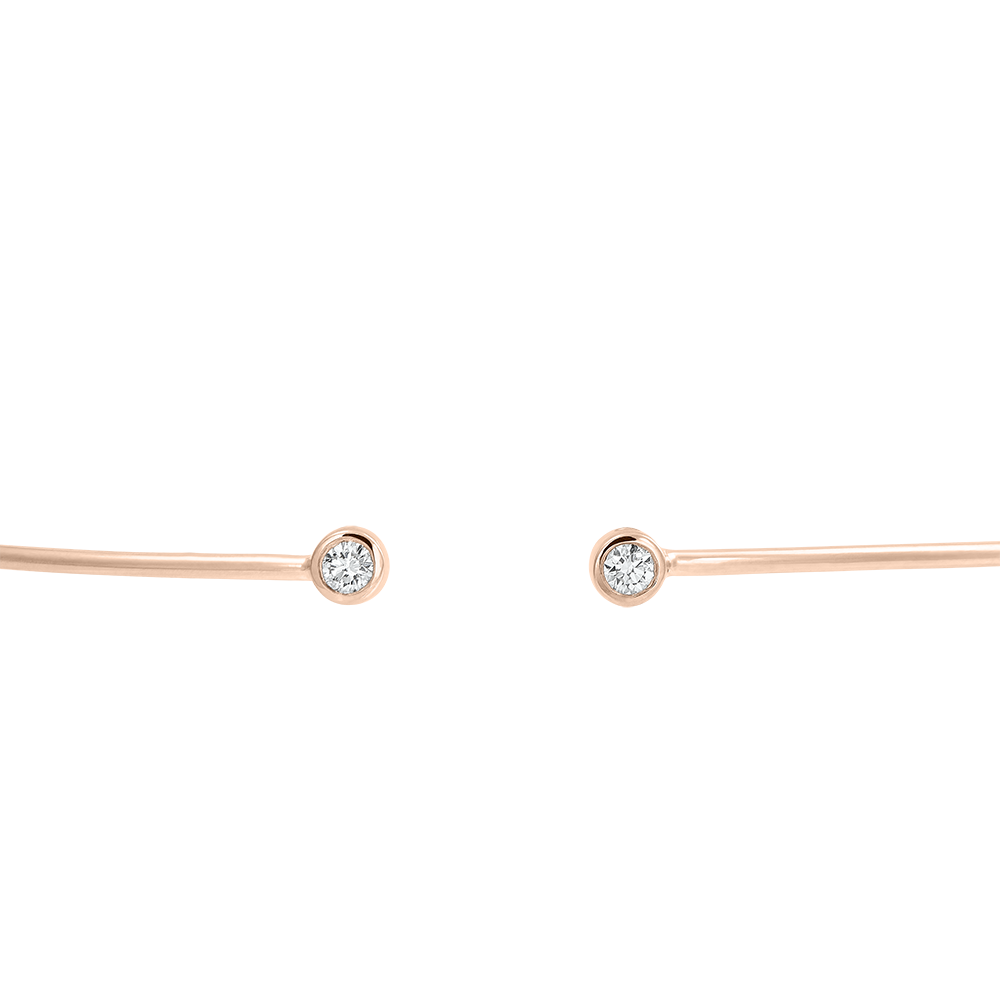 O brățară fixă, fină și elegantă împodobită cu două diamante delicate. Poate fi purtată singură sau împreună cu versiunile din aur alb și aur galben.
