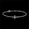 O brăţară cruce din nelipsitul aur alb, cu proporţii fine şi delicate, este subliniată de un pavaj de diamante minuţios montate pe lănţişor. Lungimea motivului: 11.5mm, înălţimea motivului: 8mm. Brăţară cu lungime reglabilă: 18cm, 17cm, 16cm