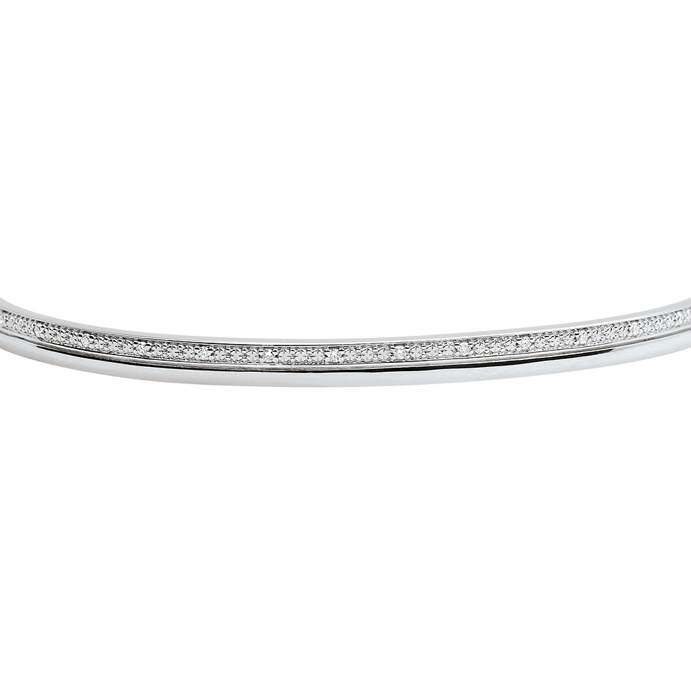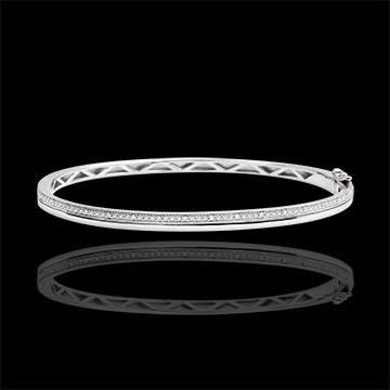 O brăţară fixă elegantă şi feminină din aur alb, amplificată de strălucirea diamantului. Lăţime: 3.8mm - Grosime: 2mm - Diametru : 60mm.