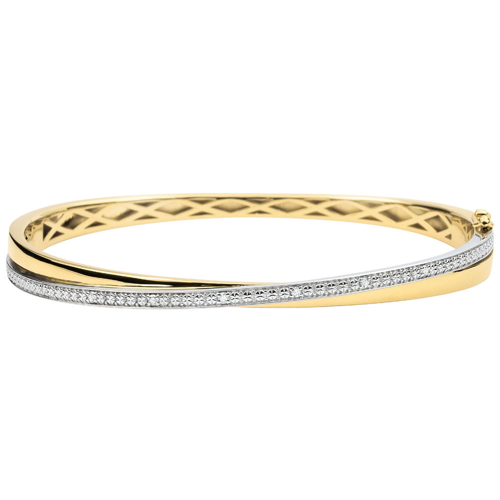 Brăţară fixă compusă dintr-un inel de aur galben subtil întreţesut cu un inel în întregime pavat cu diamante.