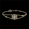 Un cerc de perle de aur înconjoară un cerc de diamante şi un solitaire în centru. Această bijuterie este fixată pe un lanţ încrustat cu două diamante. Brăţară cu lungime reglabilă: 18cm, 17cm, 16cm. Motiv de 11 mm lungime şi 11 mm înălţime.