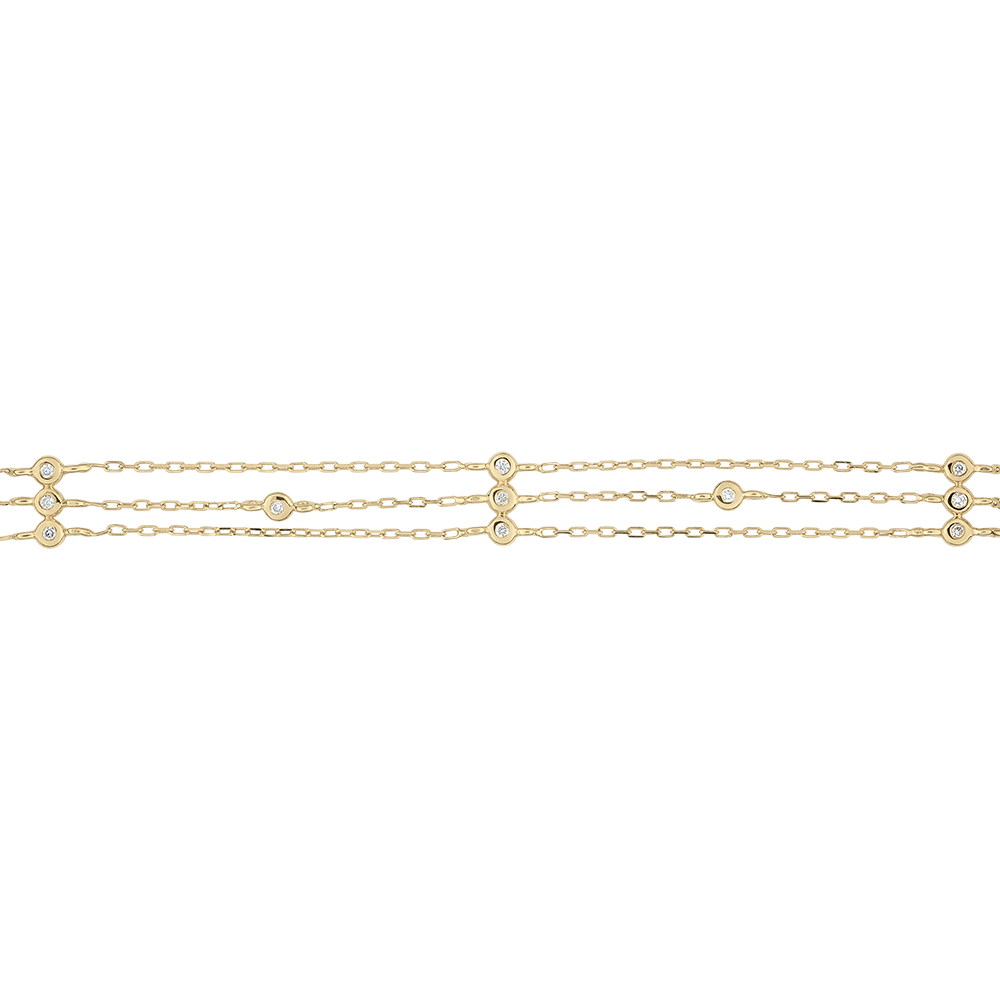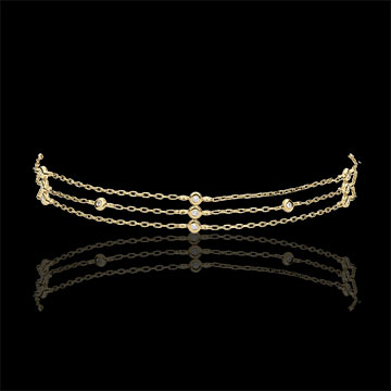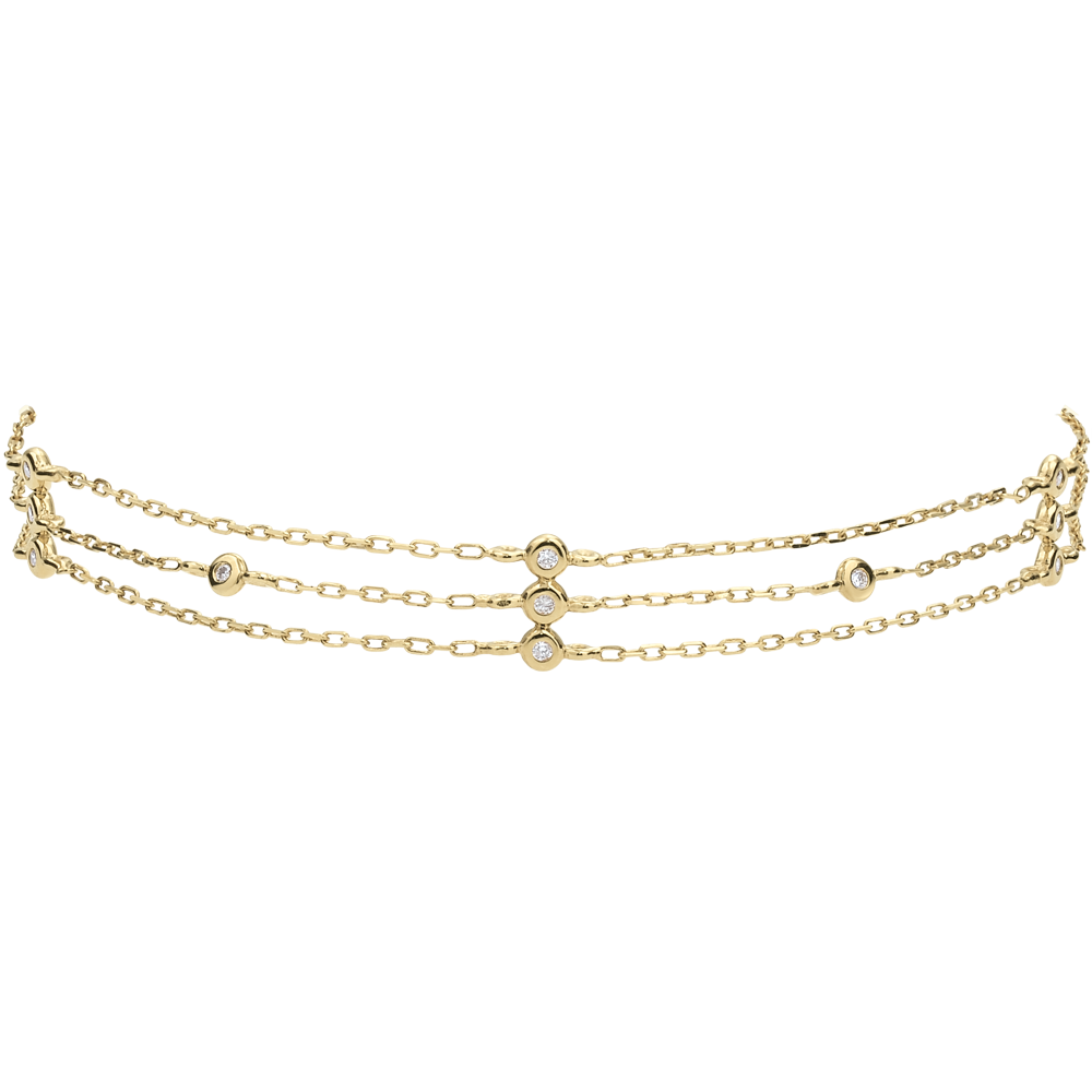 Împodobită cu diamante în trio, această brăţară este expresia eleganţei delicate.