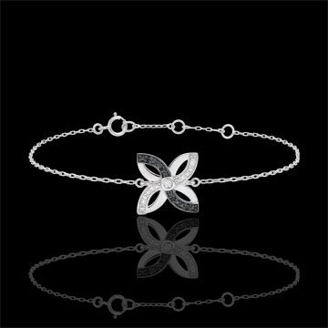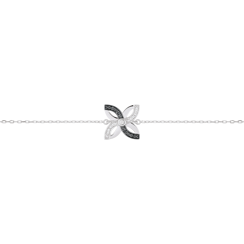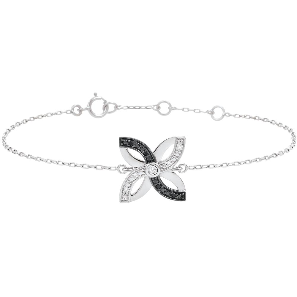 Un Crin stilizat din aur alb şi diamante negre este fixat pe un lănţişor pentru un look fin şi preţios. Brăţară cu lungime reglabilă: 18cm, 17cm, 16cm. Motiv de 12mm lungime şi 12mm înălţime.