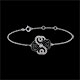 Sublima brăţară Trifoi Arabesc din aur alb încrustat cu diamante albe şi diamante negre fixat pe un lănţişor. Brăţară cu lungime reglabilă: 18cm, 17cm, 16cm. Motiv de 14.5 mm lungime şi 14.5 mm înălţime.