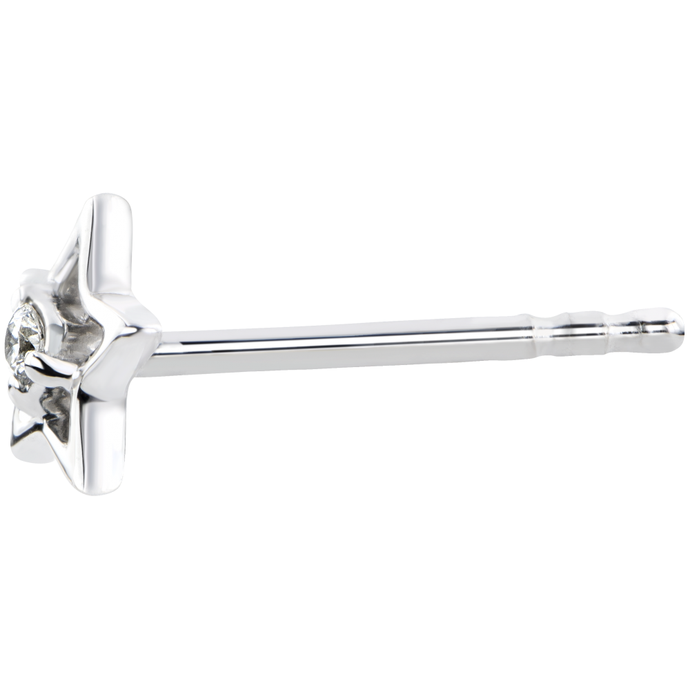 Model iconic sub formă de stea, încrustat cu un diamant, regândit într-o pereche de cercei discreţi şi unici.
