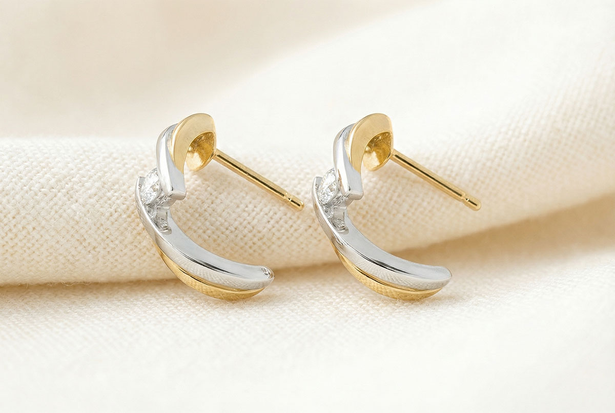 CUIB PREţIOS NR. 8Cercei cu şurub - Aur alb şi aur galben 18 carate - Diamant ID : 1264