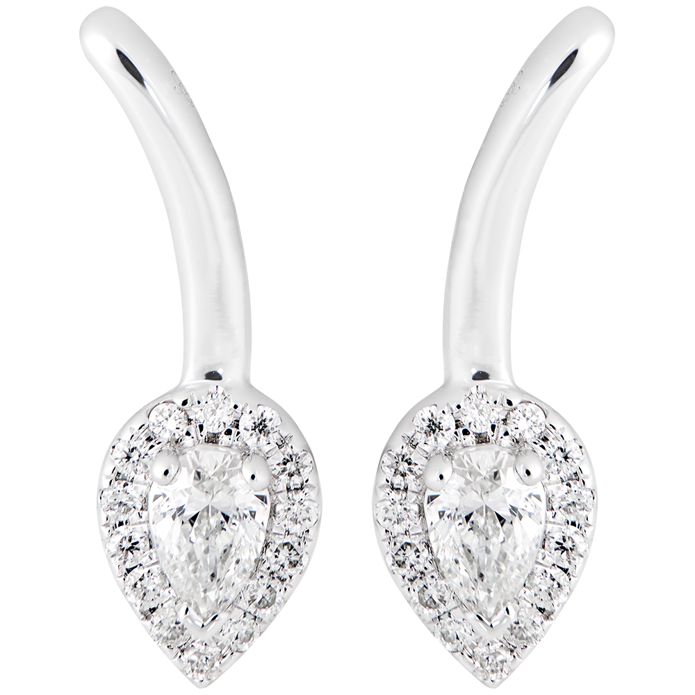 O pereche de cercei încrustați cu diamante, delicați și lejeri putând fi purtați pe lobul urechii sau ca cercei cu șurub.