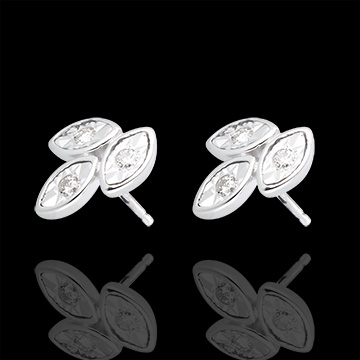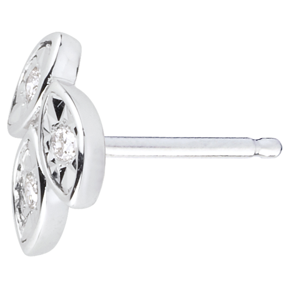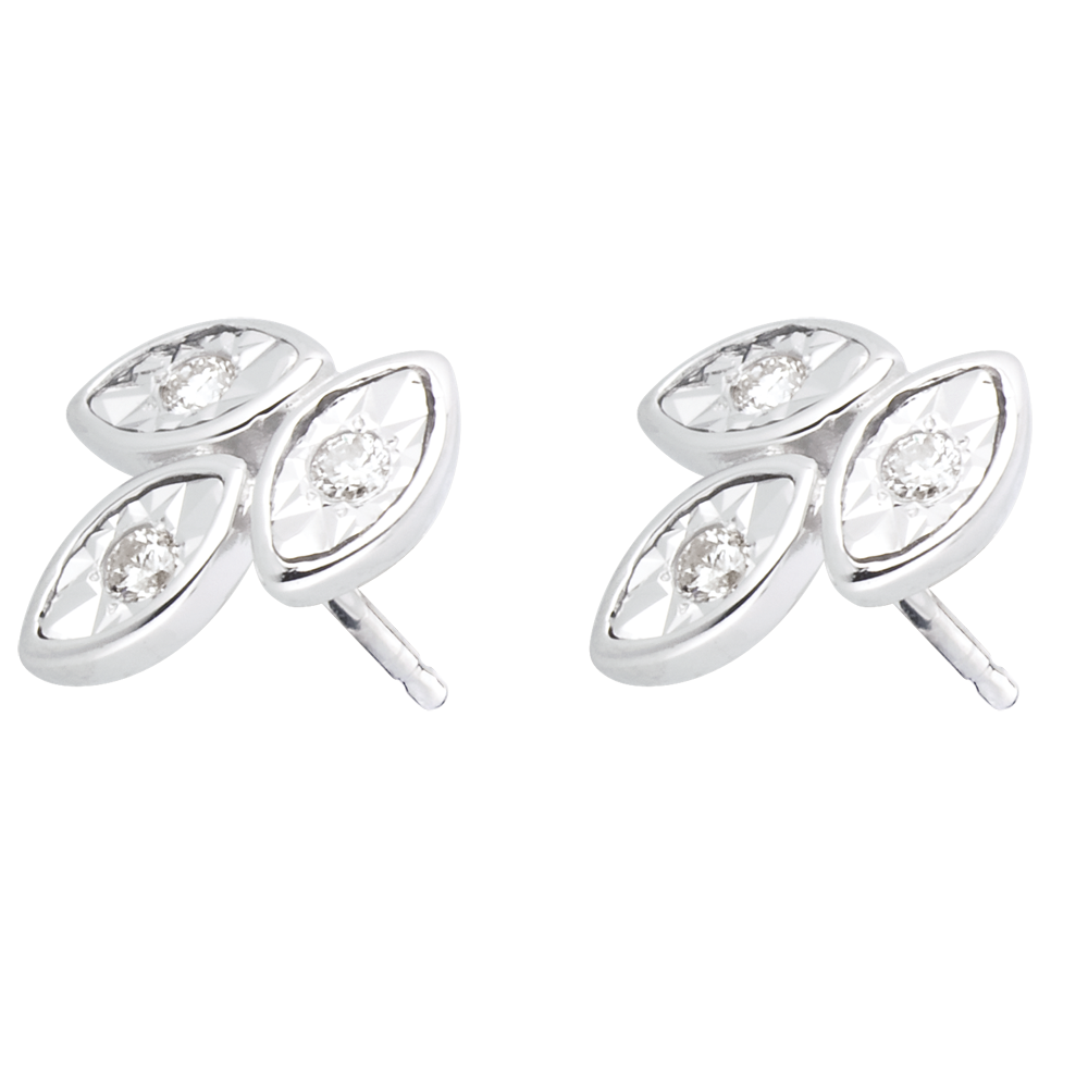 Cercei delicaţi cu şurub reprezentând un buchet vegetal din aur alb care are în centrul fiecărui element un diamant.
