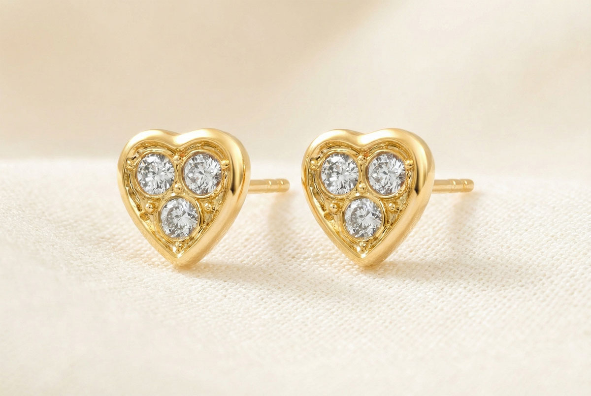 Două inimi pavate cu câte șase diamante fine, într-un design rafinat și modern.O notă luminoasă și emoțională, subtil grafică.