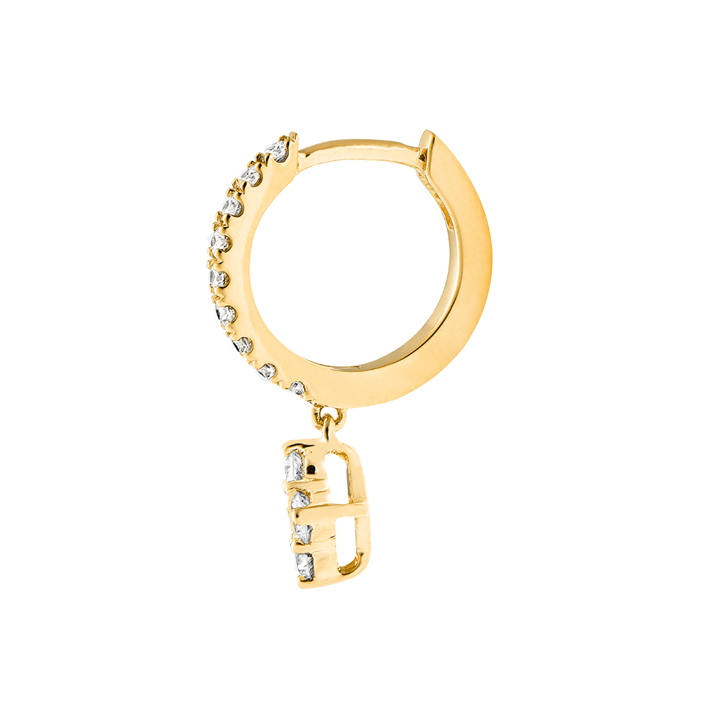 O pereche de creole din aur galben semi-pavate cu diamante al căror canaf încrustat cu un careu de 5 diamante adaugă o notă prețioasă și modernă în același timp. Canaf 5.95mm pe lateral și 3.20mm grosime.