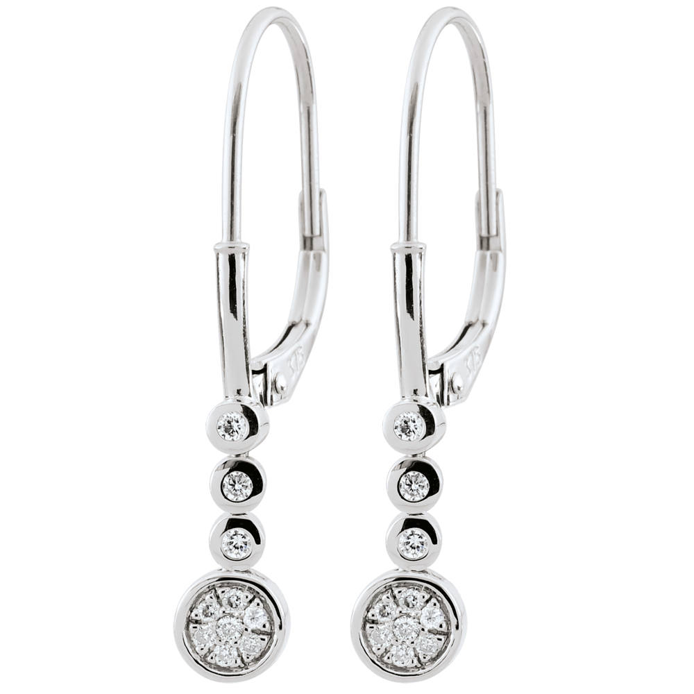 O trilogie de diamante dispuse pe vertical pentru a susţine o constelaţie de diamante adunate într-un punct final de eleganţă.