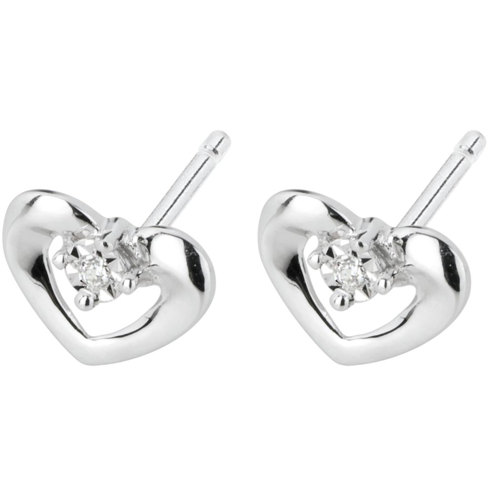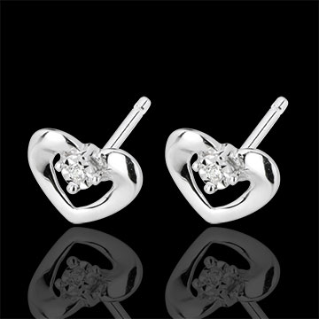 Cercei cu şurub inimi drăguţe aur alb de 18k şi diamante