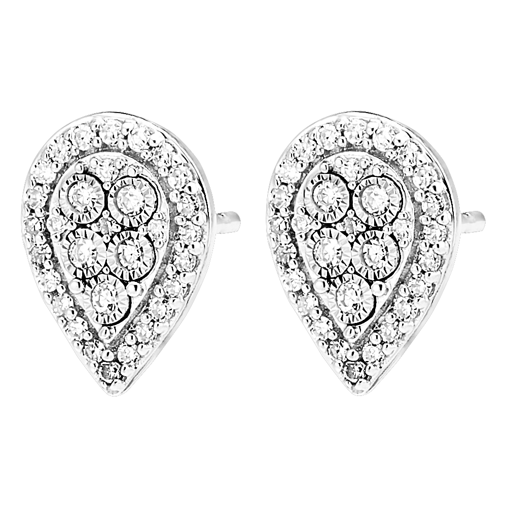 ORIGINI NR. 44Cercei cu şurub - Aur alb 9 carate - Cluster de diamante naturale, Diamant ID : 5806
