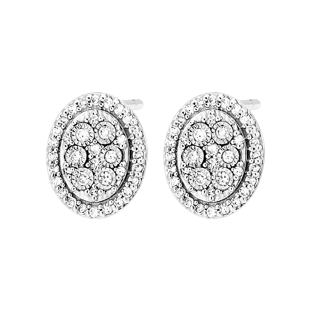 Cercei cu șurub Origini - Strălucirea unui Oval - aur alb de 18 carate și diamante