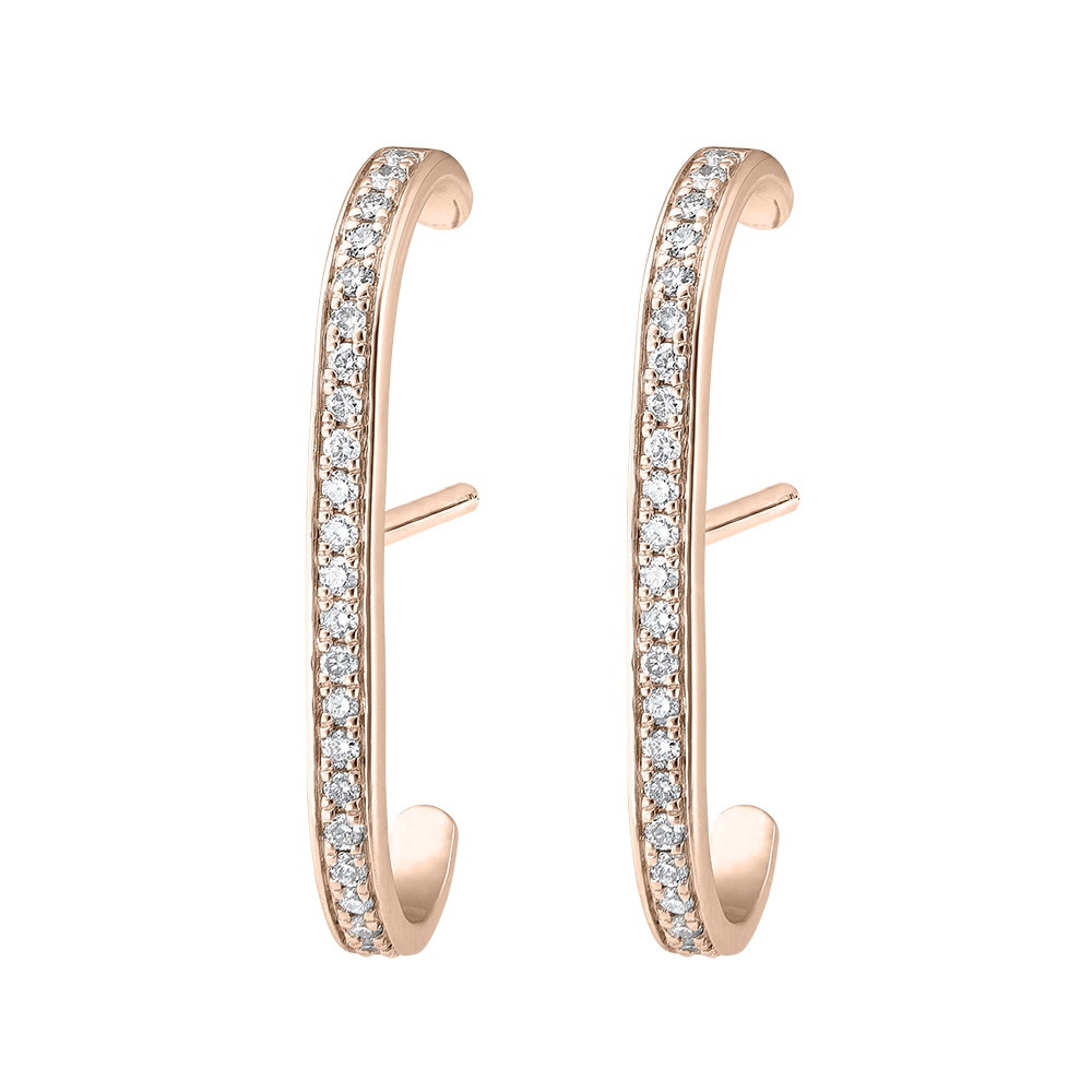 Acești cercei sunt pavați cu 46 diamante ce totalizează 0,22 carate, oferind o strălucire subtilă și rafinată.