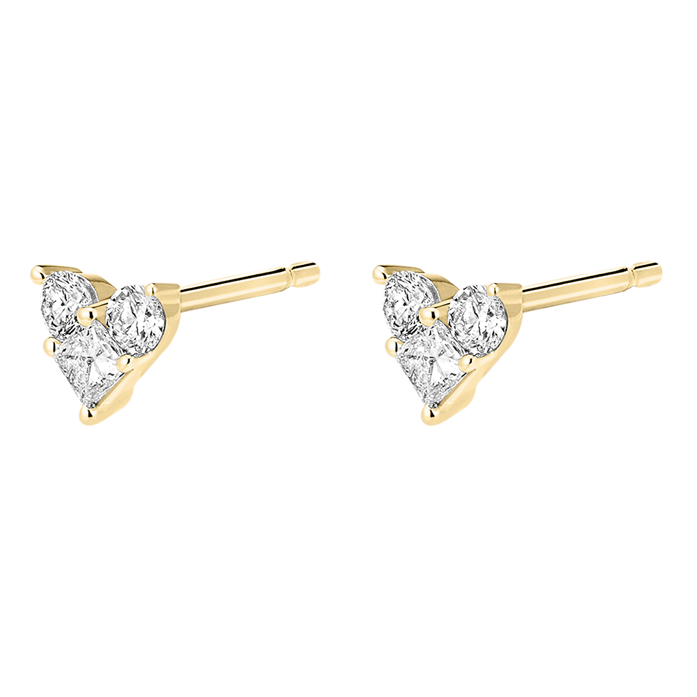 Două inimi pavate cu 3 diamante încrustate delicat pe un cercel cu șurub din aur galben. Acest simbol al bijuteriei este revizuit poetic de Edenly pentru cea mai intensă declarație de dragoste. Oh, lovely!