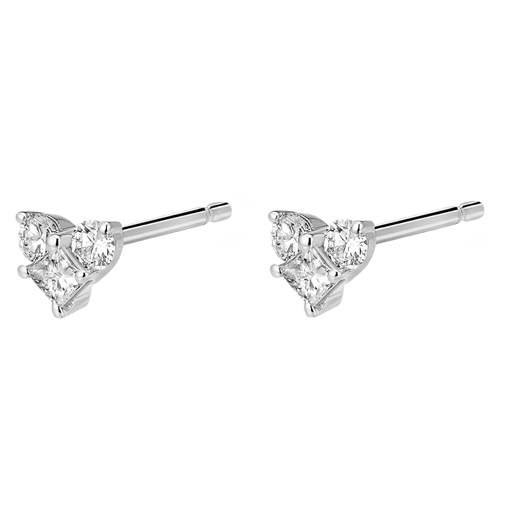 SECRET PREţIOS NR. 16Cercei cu şurub Inimă - Aur alb 9 carate - Cluster de diamante naturale ID : 5368