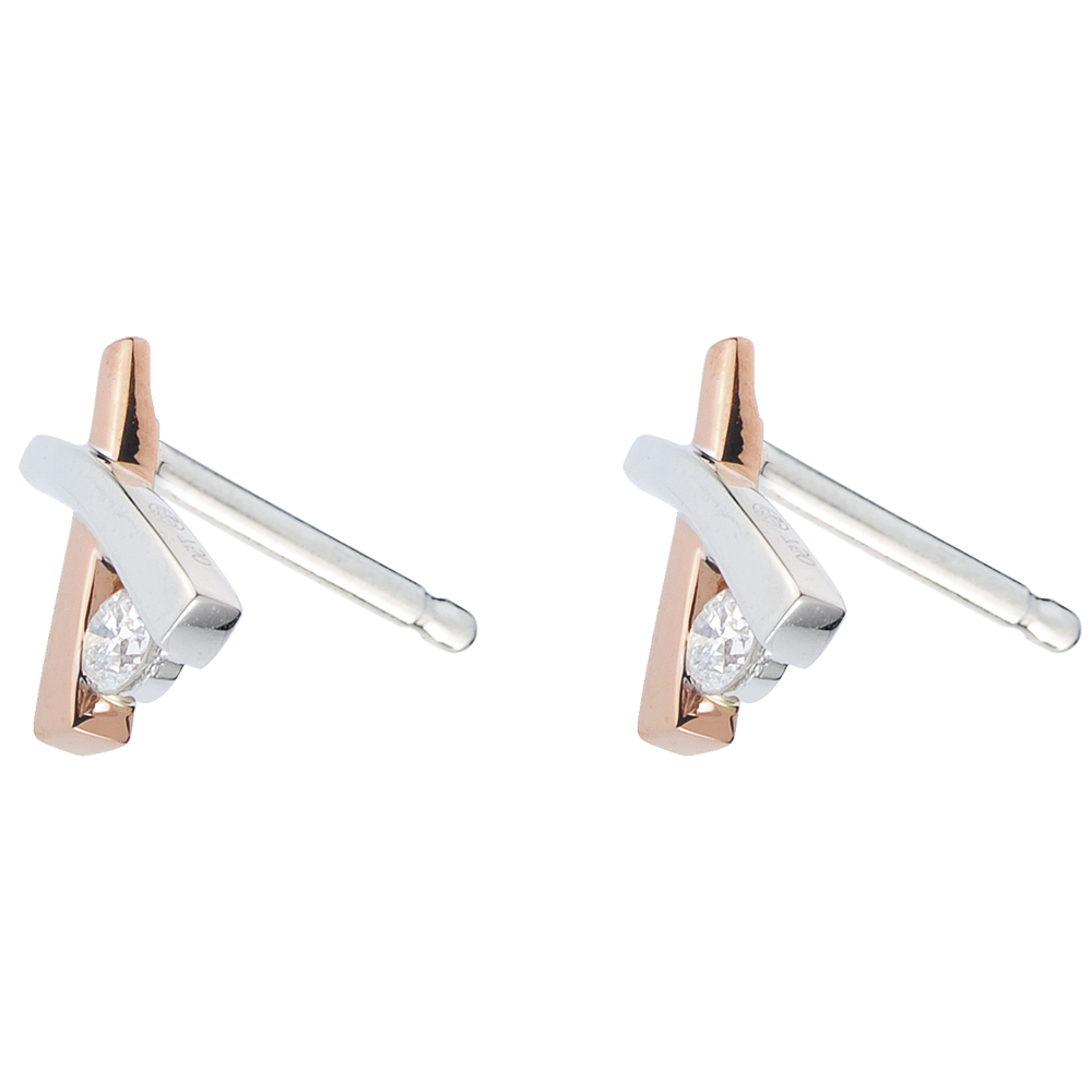 O cruce preţioasă de aur alb şi aur roz se unesc adăposteşte în inima ei un diamant pentru fiecare cercel.