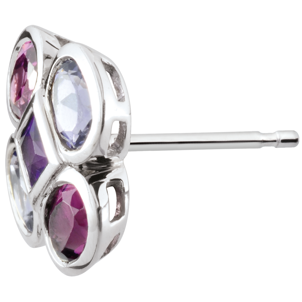 PASăRE DIN PARADIS NR. 27Cercei cu şurub - Aur alb 9 carate - Ametist, Iolit, Rodolit ID : 2443