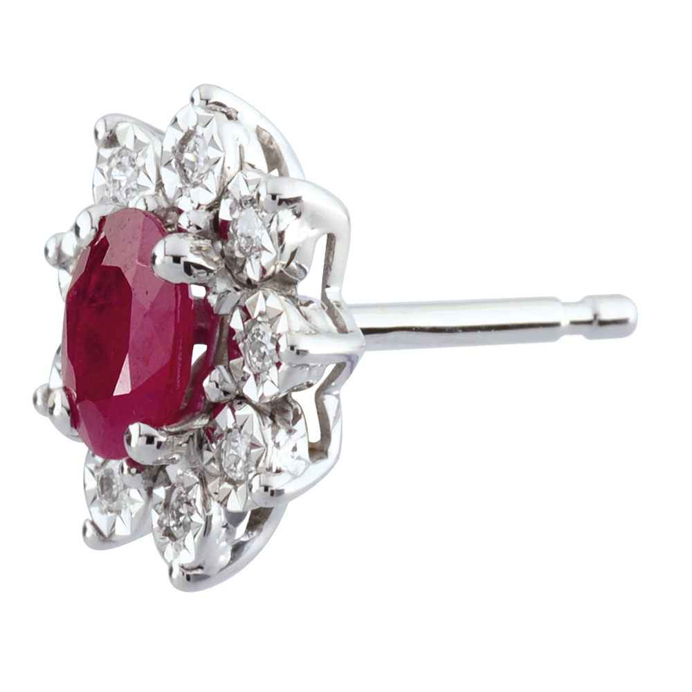 ETERNEL EDELWEISS NR. 4Cercei cu şurub Flori - Aur alb 9 carate - Rubin sintetic, Diamante de laborator ID : 4963 4.9