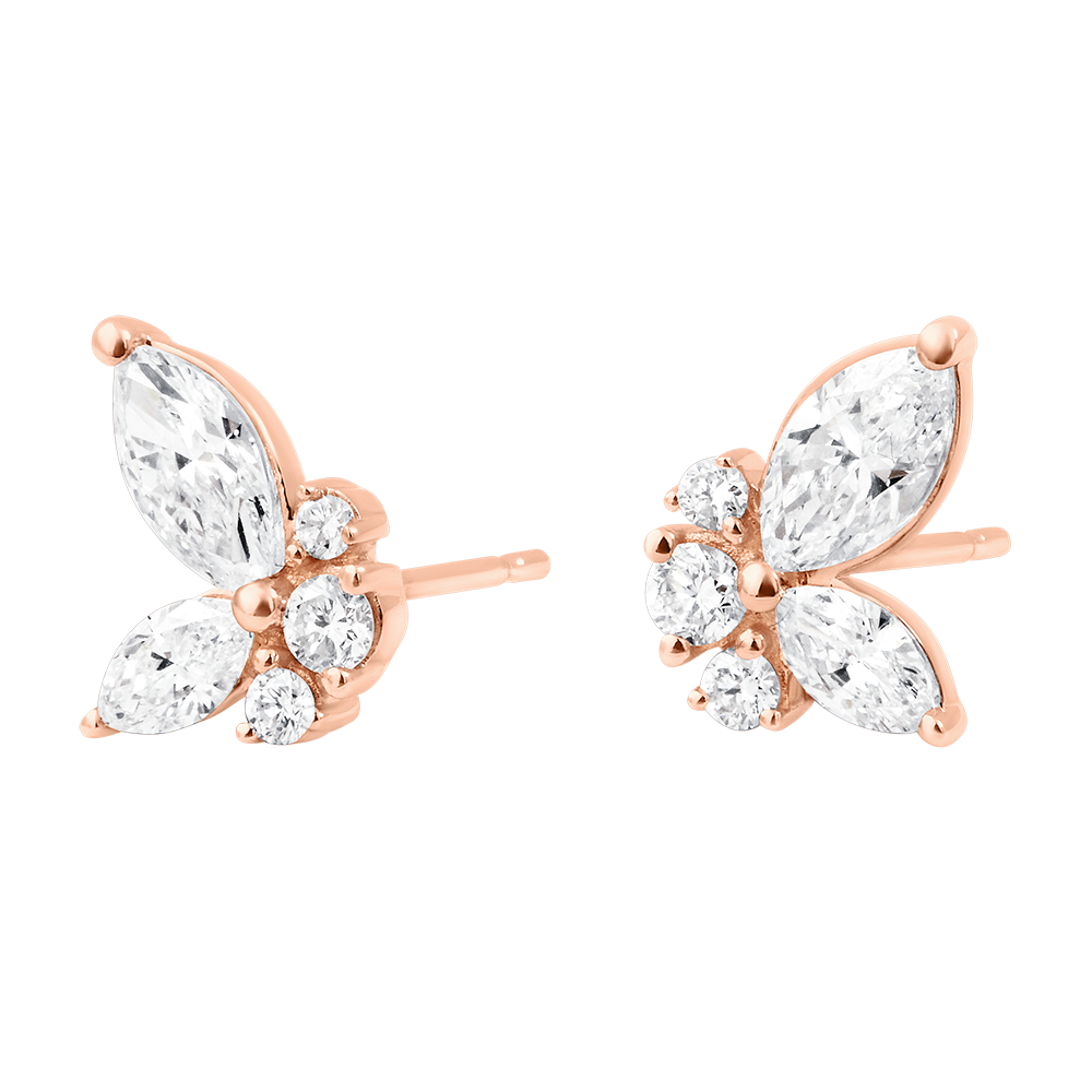 PLIMBARE IMAGINARă NR. 6Cercei cu şurub Fluture - Aur roz 9 carate - Diamante de laborator ID : 7466