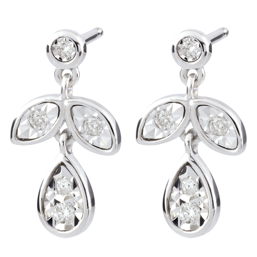 GRăDINă FERMECATă NR. 4Cercei Frunze - Aur alb 9 carate - Diamant ID : 2421