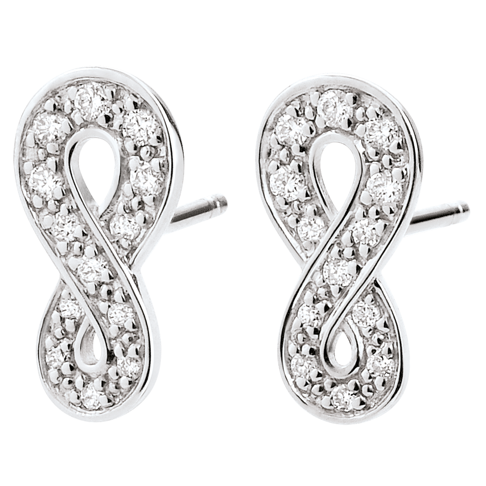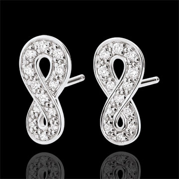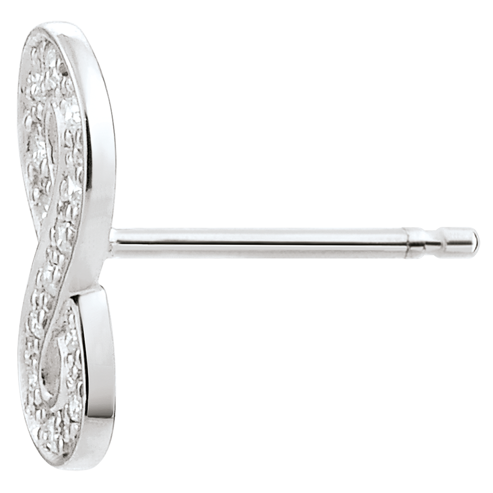 Semnul Infinit din aur alb încrustat cu diamante fixat pe cercei cu şurub. Este simbolul eternităţii absolute.